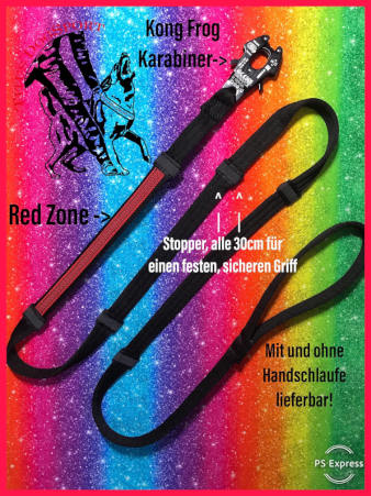 Die Leine ist aus Nylongurtband, welches reißfest und robust ist. Es liegt sehr gut